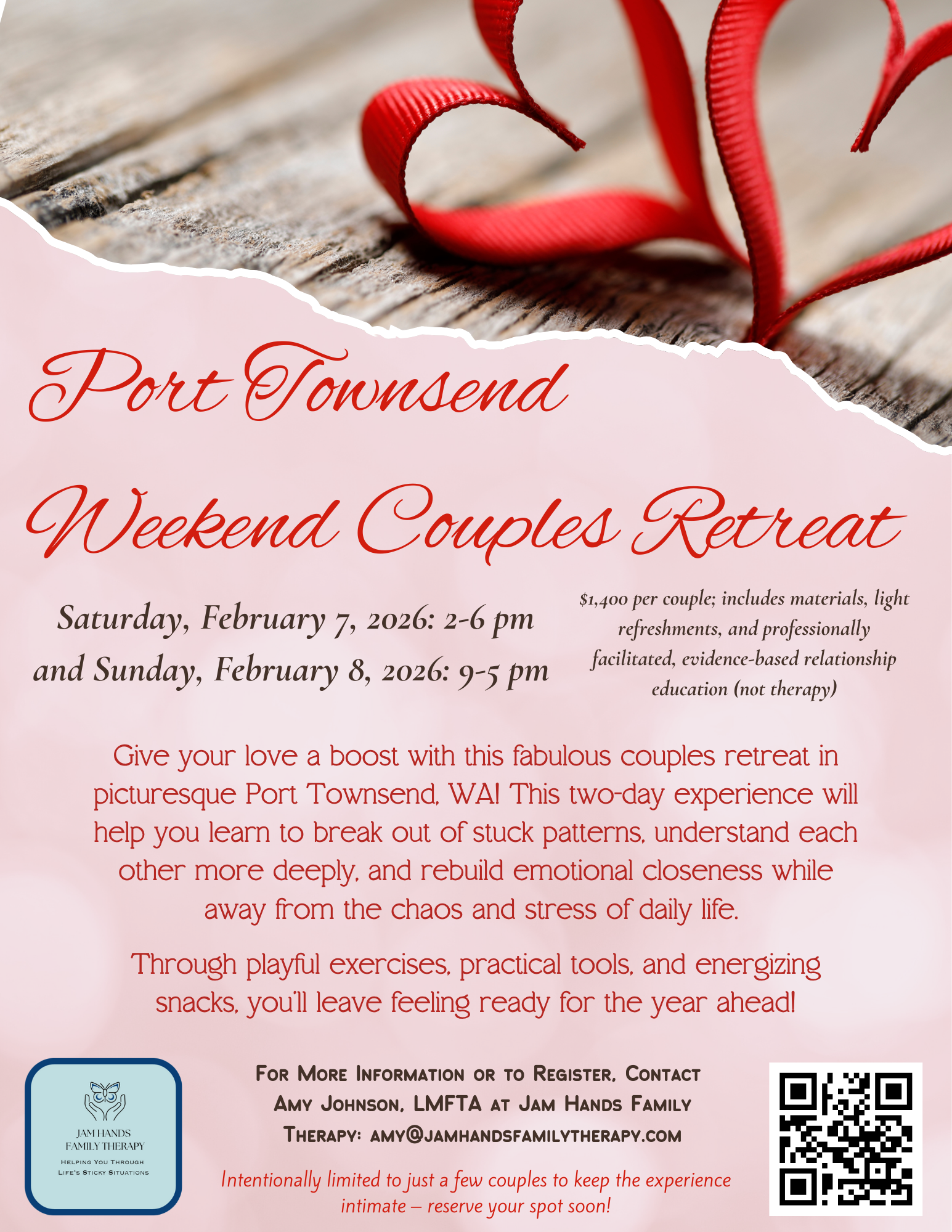 Spend a cozy overnight in beautiful Port Townsend, Washington, with Amy Johnson, Licensed Couple and Family Therapist Associate and owner of Jam Hands Family Therapy, for an invigorating and connecting retreat.